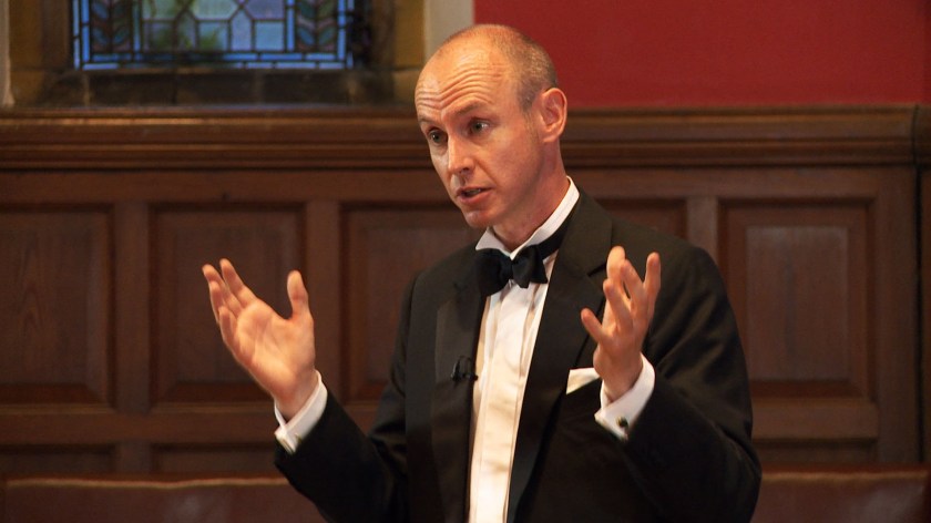 Hannan er mælskumaður og hefur lag á að koma fundarmönnum í stuð og margoft var klappað. Hann sagði margt áhugavert þó að flest sé hafi reyndar verið mælskubrögð og ýmislegt sem erfitt er að sannreyna. Hann tók það fram, bæði á skrifstofunni hjá mér og á fundinum að hann talaði bæði frönsku og spænsku. Það er líka tekið fram á heimasíðunni hans. Hann fékk ekki að vita hvaða tungumál ég tala eða skil.
