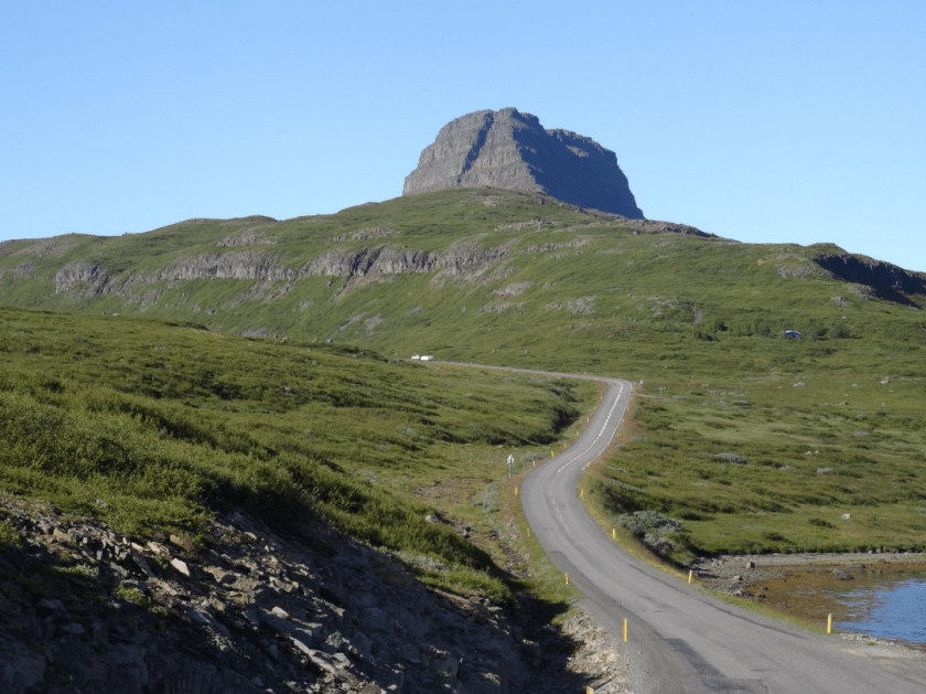 Ekki áttu margir leið inn í Hestfjörðinn þetta sumar aðrir en Vegagerðarmenn. Þó man ég að þangað kom Sigurður Bjarnason frá Vigur og Baldur bróðir hans sem var hreppstjóri ef ég man rétt. Baldur lofaði verkið mikið og lofaði okkur reisugilli að verki loknu. „Og það er ekkert kosningaloforð,“ sagði hann. En ekkert fengum við gillið, sem þó var haldið löngu eftir að við vorum farnir og einhverjir feitir ýtukarlar fengu allar kræsingarnar.