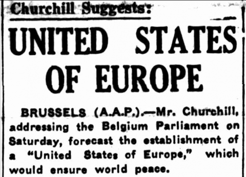 Árið 1946 gekk hann lengra í frægri ræðu í Zurich: „Við verðum að byggja upp eins konar Bandaríki Evrópu … sem verða þannig, ef vel tekst til, að styrkur hvers ríkis um sig skiptir ekki mestu máli. Ef öll ríki Evrópu vilja ekki taka þátt í bandalaginu í upphafi verðum við samt að ná saman þeim sem vilja og geta ruglað saman reytum.“