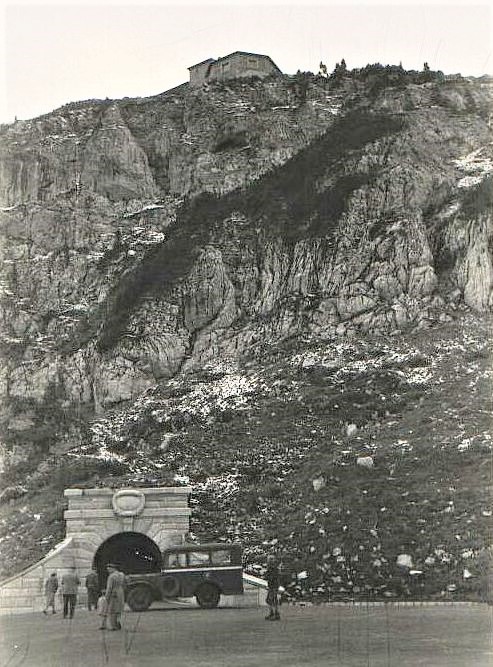 Eftir rúmlega tveggja og hálfs tíma göngu komum við upp á bílastæði. Hækkunin er um 800 metrar. Þar er snarbrattur hamar en maður fer í gegnum göng að lyftu upp í veitingahúsið sem er þar. Sagt er að foringinn hafi bara komið þangað 14 sinnum, en hann var miklu oftar í húsinu sínu sem er nálægt þeim stað sem við byrjuðum á. Göngin ná hálfri bíllengd lengra en að lyftunni, til þess að foringinn gæti gengið beint inn í hana. Þau eru um 100 metra löng, en ekki breiðari en svo að bílarnir urðu að bakka út aftur. Sagt er að húsið og vegurinn að því hafi kostað jafnvirði 28 milljarða króna að núvirði að frátöldum mannsskaðanum. Það eru tveir milljarðar á hverja heimsókn.